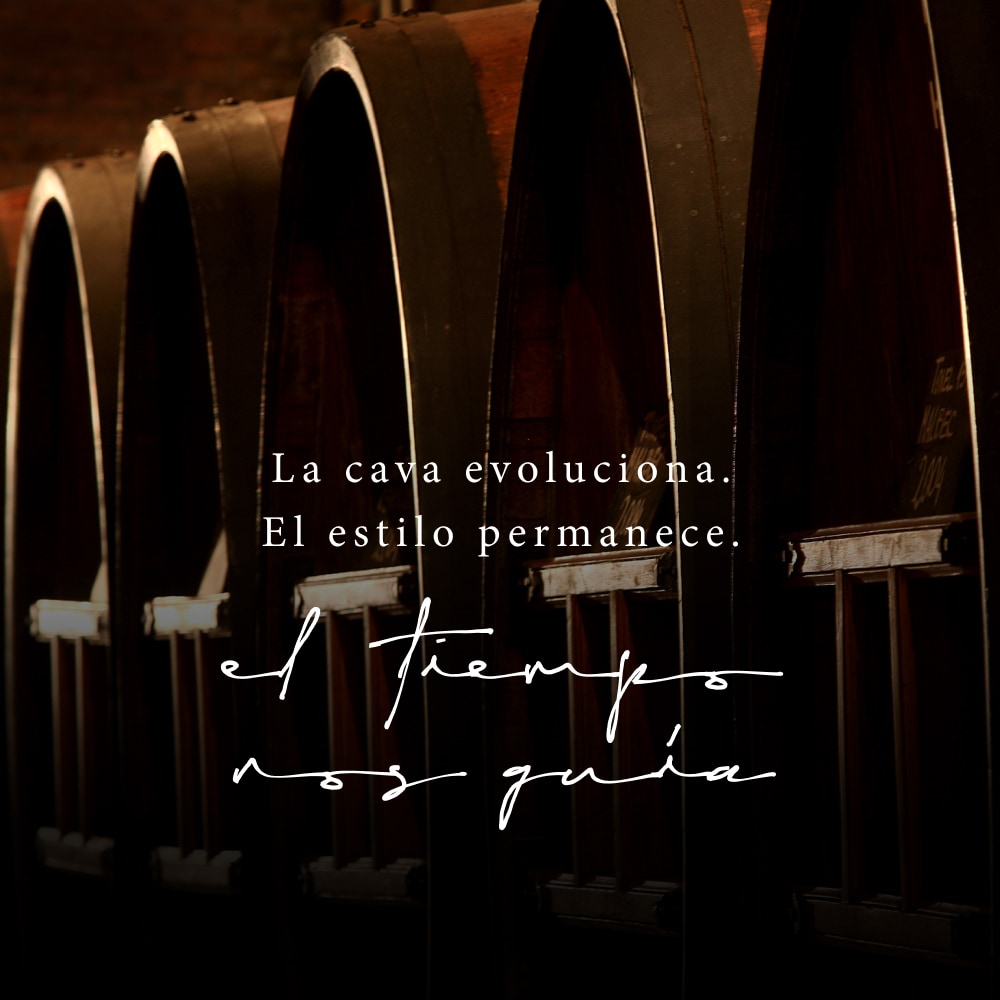 El aire fresco y húmedo recorre la cava, acaricia la madera y acompaña el pulso del tiempo.